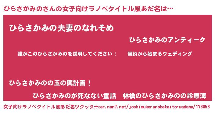 | 胡散臭い通販商品みたいなあだ名 | 『億万長者になれる霊験あらたかなお札…その名も「ひらさかみの」』 |