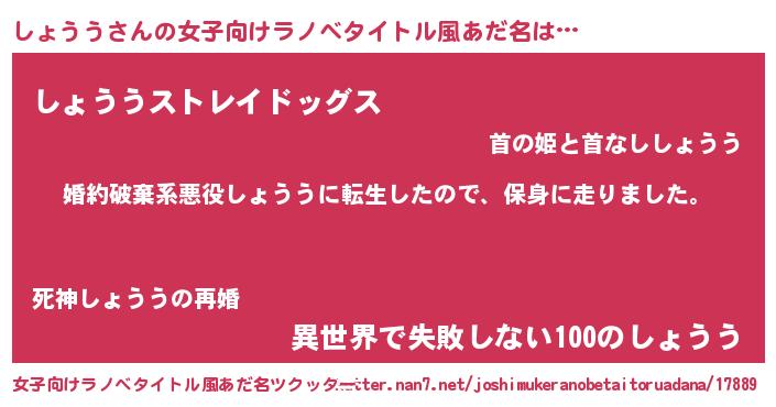 | 胡散臭い通販商品みたいなあだ名 | 『ガンによく効くアガリクス…その名も「しょうう」』 |