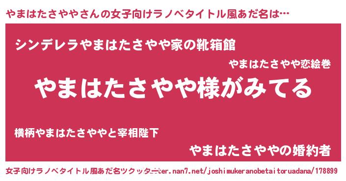 | 意味不明あだ名 | 『とにかく怪しいやまはたさやや』 |