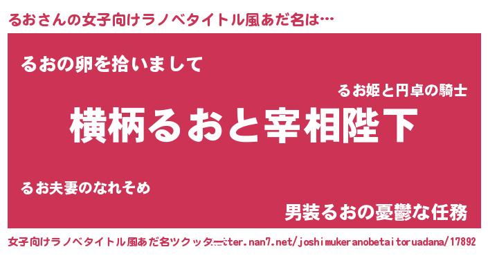 | 男性向けラノベタイトル風あだ名 | 『るおに滅ぼされるだけの簡単なお仕事です』 |