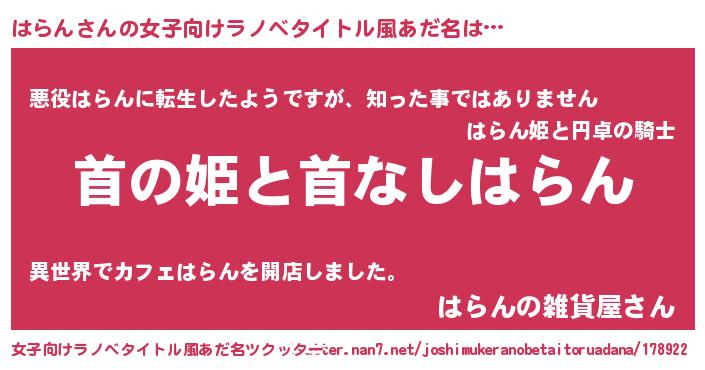 | 男性向けラノベタイトル風あだ名 | 『はたらくはらんさま!』『はらんの憂鬱』 |