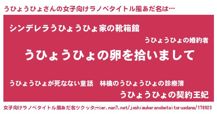 | ヒーロー風カッコイイあだ名 | 『魔戒騎士ウヒ』『ネオウヒョウヒョ』 |