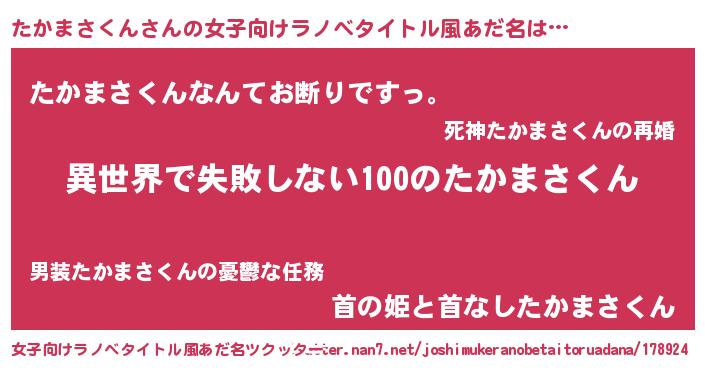 | ヘコむあだ名 | 『たかまさくん(苦笑)』『たかっちょ』 |