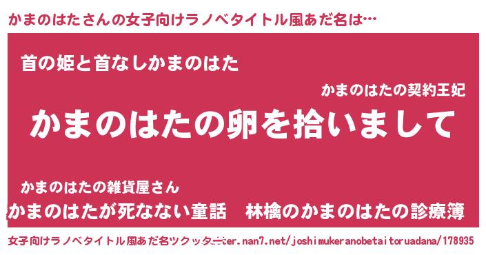 | 胡散臭い通販商品みたいなあだ名 | 『伝統あるサプリメント…その名も「かまのはた」』 |