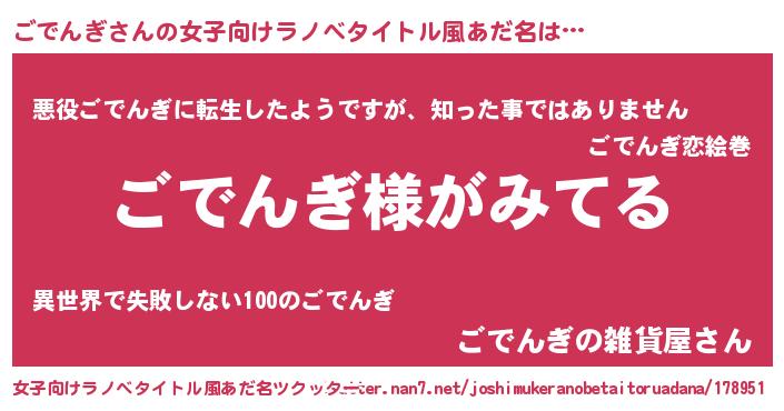 | 意味不明あだ名 | 『とにかく怪しいごでんぎ』 |