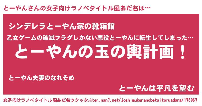 | ピコ太郎風あだ名 | 『トー八郎』『トト太郎』『ピト六郎』 |