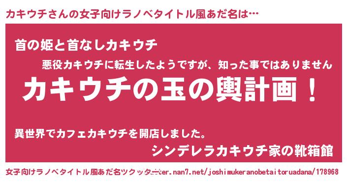 | 胡散臭い通販商品みたいなあだ名 | 『あなたにだけ特別に提供する世界で10本だけ現存している希少なブランデー…その名も「カキウチ」』 |
