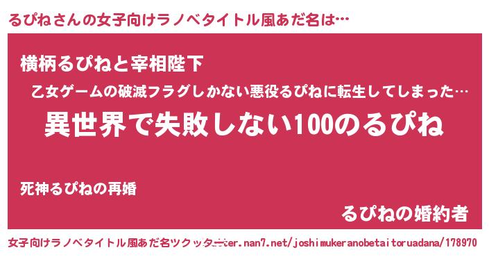 | 男性向けラノベタイトル風あだ名 | 『るぴねという概念が存在しない退屈な世界 』 |