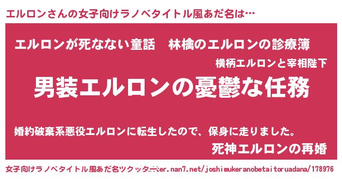 | 意味不明あだ名 | 『住所不定無職エルロン(5歳)』 |