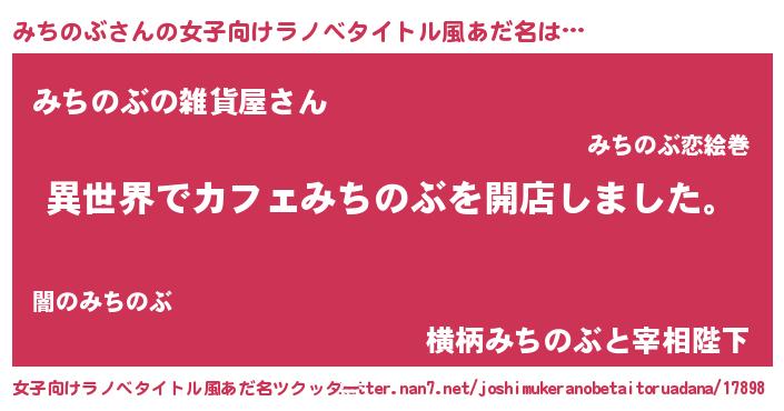 | ヘコむあだ名 | 『みちのぶ(苦笑)』『牛乳』 |