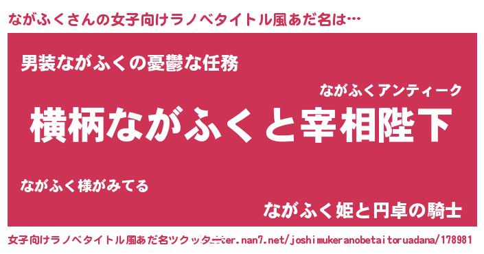 | 男性向けラノベタイトル風あだ名 | 『ながふくに滅ぼされるだけの簡単なお仕事です』 |