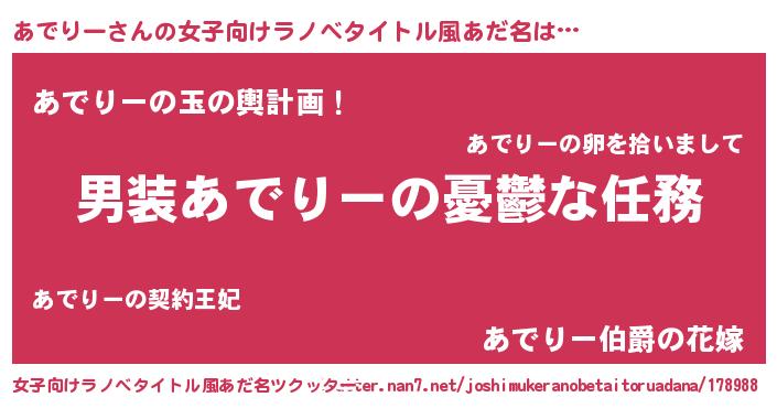 | 男性向けラノベタイトル風あだ名 | 『冴えないあでりーの育てかた』 |
