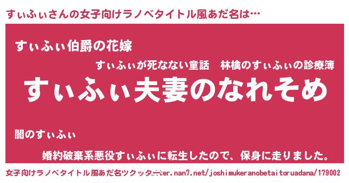 | 男性向けラノベタイトル風あだ名 | 『おまえをオタクにしてやるから、俺をすぃふぃにしてくれ! 』 |