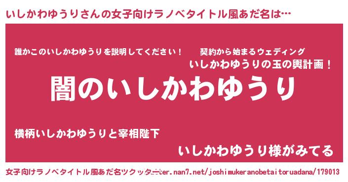 | 恥ずかしいあだ名 | 『イシカワユウリデラックス』『いしちん』 |