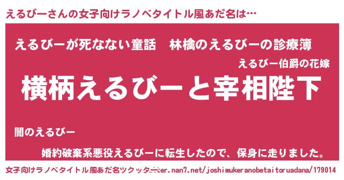 | 意味不明あだ名 | 『住所不定無職えるびー(13歳)』 |