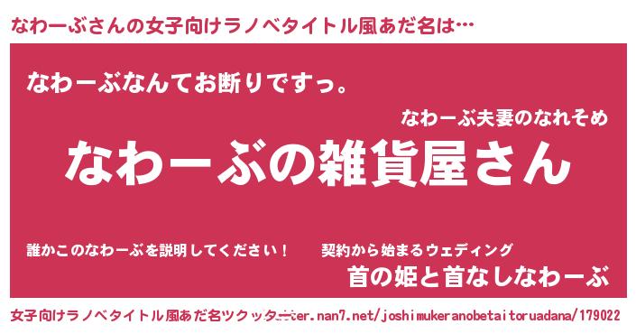 | 胡散臭い通販商品みたいなあだ名 | 『幸せが訪れる高級そうな壺…その名も「なわーぶ」』 |