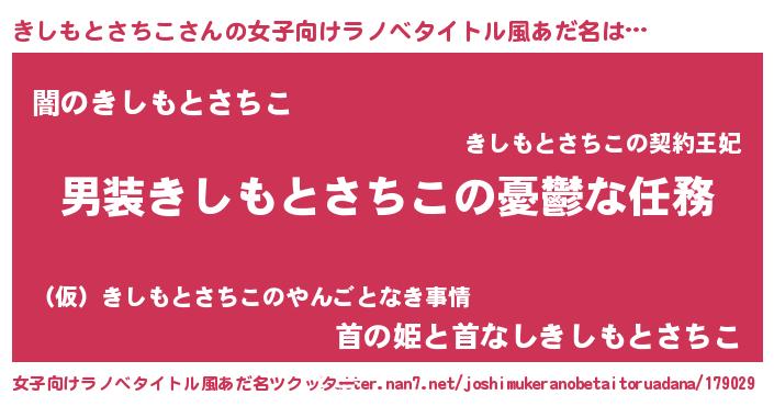 | 男性向けラノベタイトル風あだ名 | 『うちのきしもとさちこが世界を掌握している!』 |