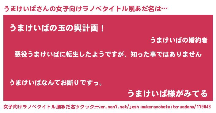 | 男性向けラノベタイトル風あだ名 | 『この素晴らしい世界にうまけいばを!』 |