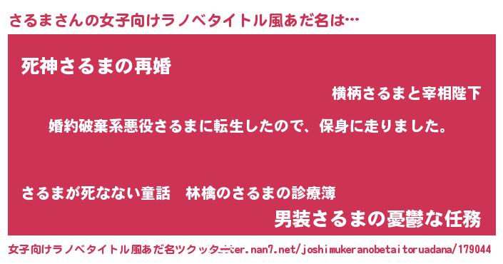 | 男性向けラノベタイトル風あだ名 | 『サルマスレイヤー』『魔弾の王とさるま』 |