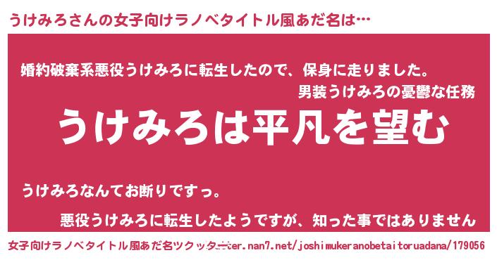| 胡散臭い通販商品みたいなあだ名 | 『信頼と実績のサプリメント…その名も「うけみろ」』 |