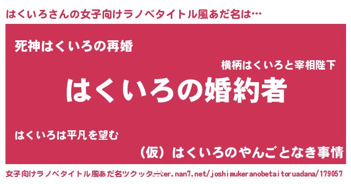 | ファンタジー風あだ名 | 『エターナルハクイロー』『クインハット』 |