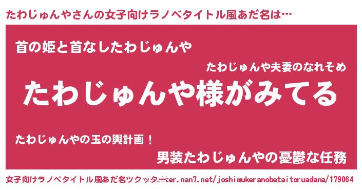 | 男性向けラノベタイトル風あだ名 | 『たわじゅんやの嫁は女の子じゃないと思った?』 |