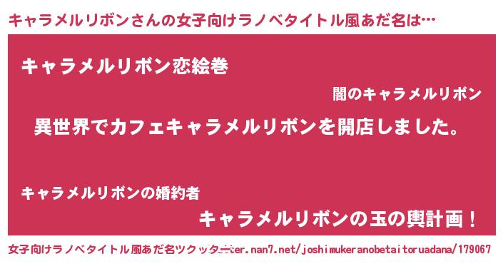 | 男性向けラノベタイトル風あだ名 | 『誰もが恐れるあのキャラメルリボンが、ぼくの専属メイドになるようです。』 |