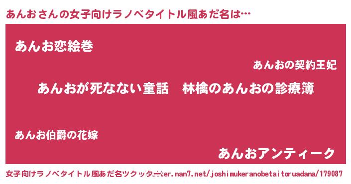 | 意味不明あだ名 | 『住所不定無職あんお(98歳)』『自称あんお』 |