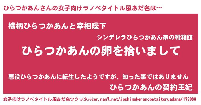 | ヘコむあだ名 | 『ひら太郎』『ひらつかあん(震え声)』 |