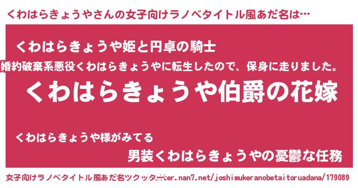 | 男性向けラノベタイトル風あだ名 | 『やはりくわはらきょうやの青春ラブコメはまちがっている 』 |