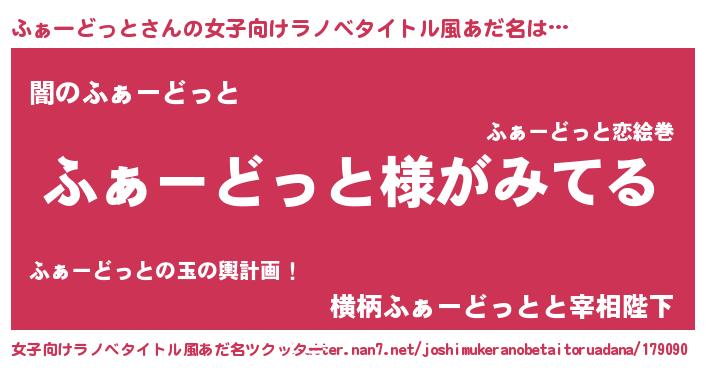 | 男性向けラノベタイトル風あだ名 | 『ふぁーどっとの嫁は女の子じゃないと思った?』 |