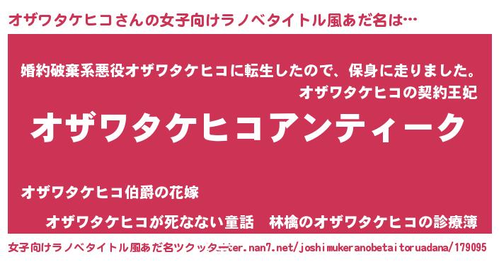 | 意味不明あだ名 | 『自称オザワタケヒコ』 |