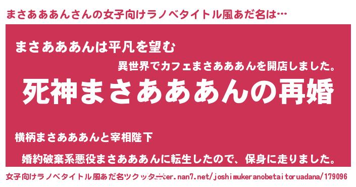 | 男性向けラノベタイトル風あだ名 | 『ノーゲーム・ノーマサアアアン』 |