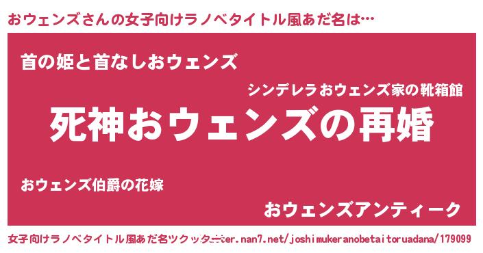 | 男性向けラノベタイトル風あだ名 | 『ノーゲーム・ノーオウェンズ』 |