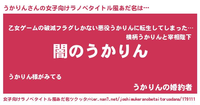 | 意味不明あだ名 | 『自称うかりん』『うかりんフォーエバー』 |