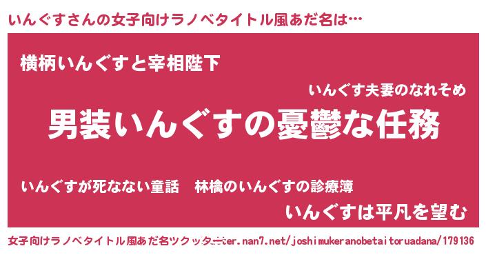 | 男性向けラノベタイトル風あだ名 | 『うちのいんぐすが世界を掌握している!』 |