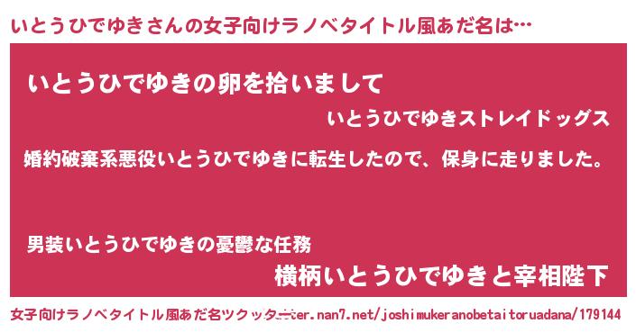 | ポケモン風あだ名 | 『イトキング』『ヒイトウヒデユキ』 |