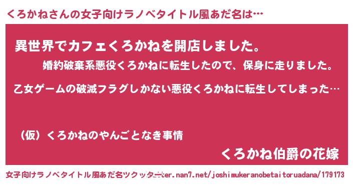 | 意味不明あだ名 | 『住所不定無職くろかね(50歳)』 |