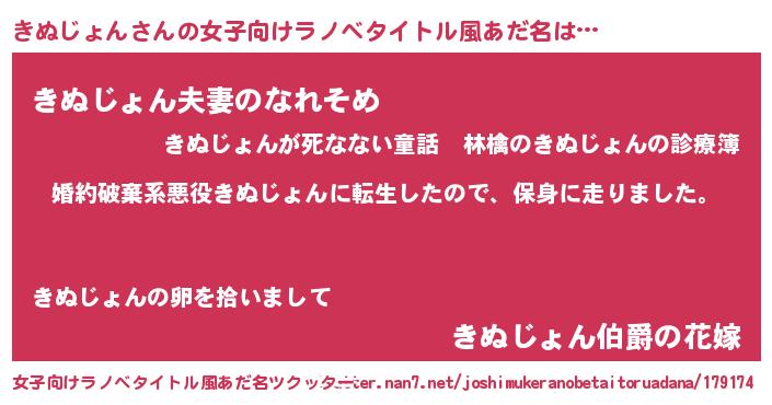 | 意味不明あだ名 | 『めかぶ科きぬじょん属』 |