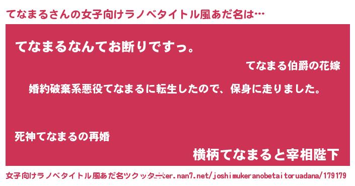 | 男性向けラノベタイトル風あだ名 | 『テナマルスレイヤー』 |