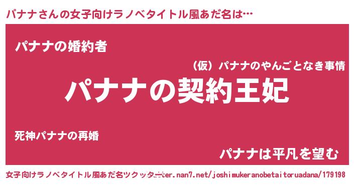 | 男性向けラノベタイトル風あだ名 | 『パナナという概念が存在しない退屈な世界 』 |