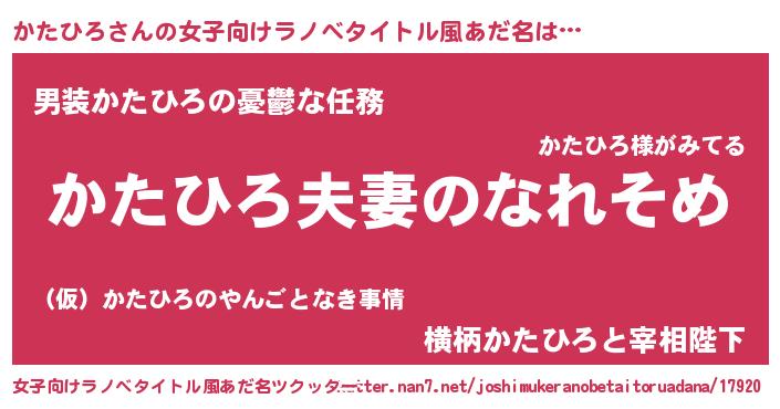 | ヒーロー風カッコイイあだ名 | 『正義の使者かたひろ』『天弓騎士カタ』 |