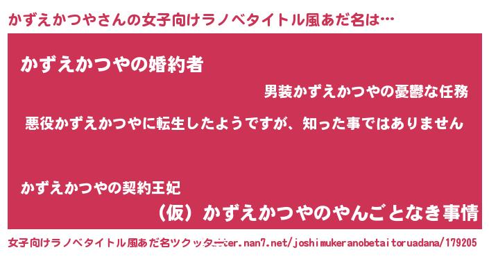 | 意味不明あだ名 | 『住所不定無職かずえかつや(9歳)』 |