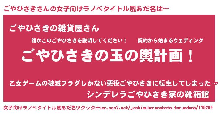 | 胡散臭い通販商品みたいなあだ名 | 『運命の人と巡り会える高級そうな壺…その名も「ごやひさき」』 |
