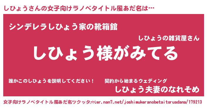 | 男性向けラノベタイトル風あだ名 | 『しひょうの嫁は女の子じゃないと思った?』 |