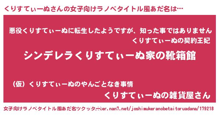 | ヘコむあだ名 | 『つくし』『くりすてぃーぬ(小並感)』 |