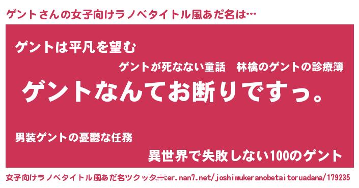 | 意味不明あだ名 | 『自称ゲント』『とにかく怪しいゲント』 |