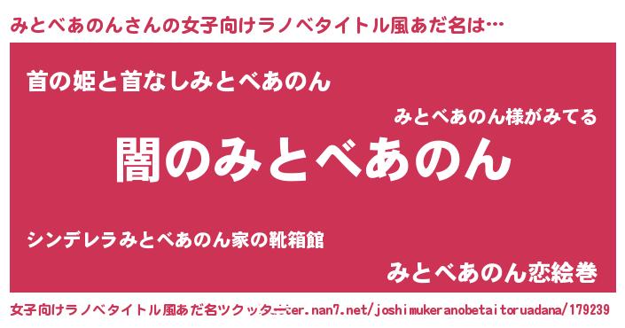 | 男性向けラノベタイトル風あだ名 | 『Re:みとべあのんから始める異世界生活』 |
