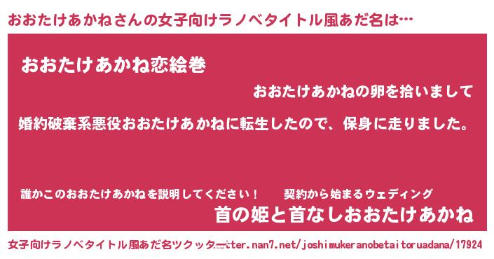 | 男性向けラノベタイトル風あだ名 | 『オオタケアカネスレイヤー』 |