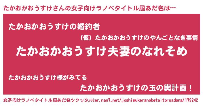 | 男性向けラノベタイトル風あだ名 | 『おまえをオタクにしてやるから、俺をたかおかおうすけにしてくれ! 』 |